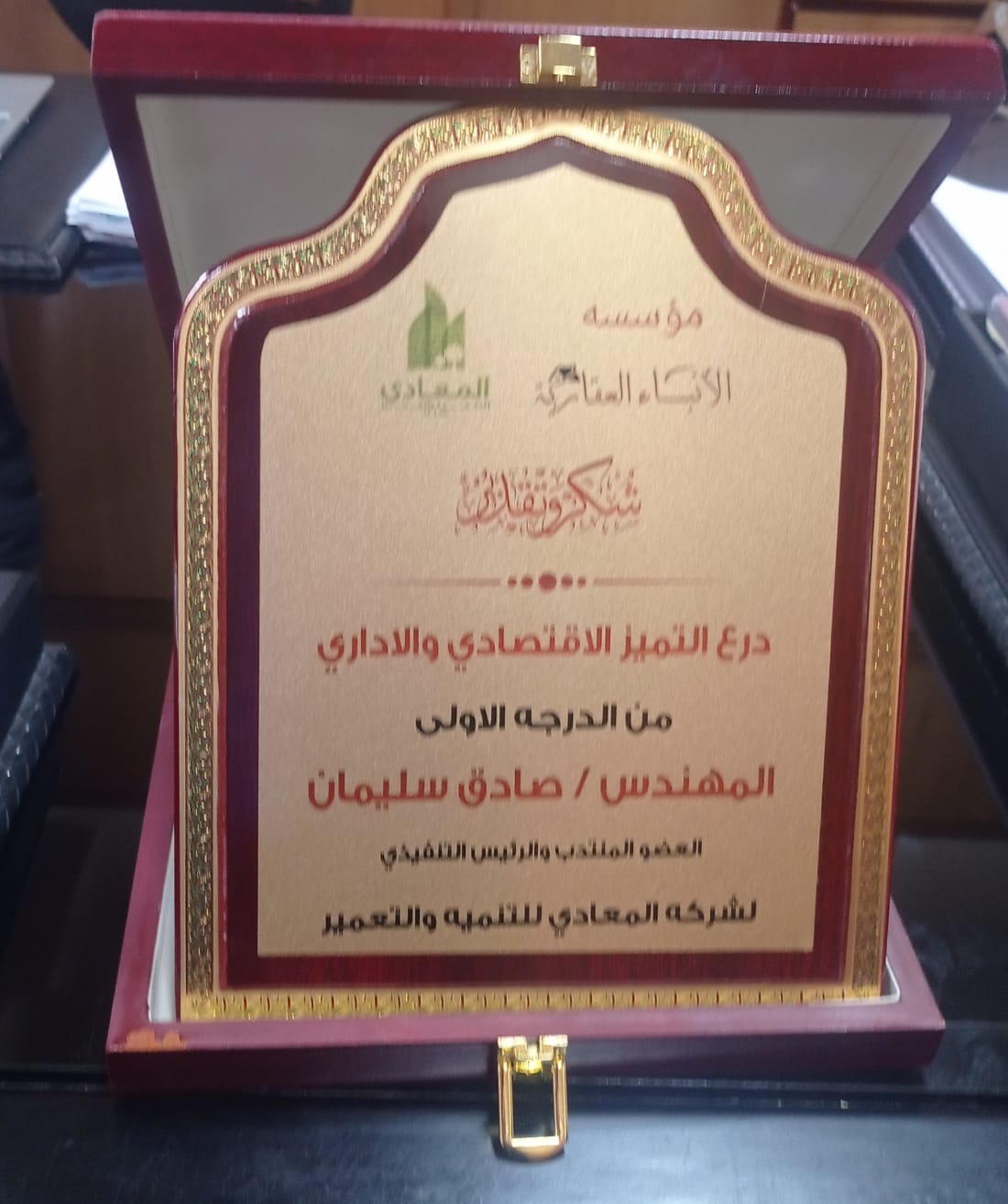في حفل مميز، قامت مؤسسة الأنباء العقارية بتكريم المهندس صادق سليمان، العضو المنتدب والرئيس التنفيذي لشركة المعادي للتنمية والتعمير.