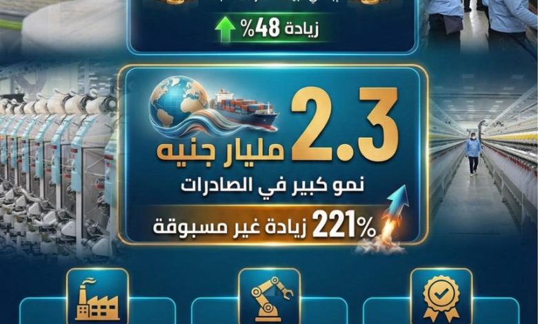 بالإنفوجراف.. كشفت المؤشرات المالية للشركة القابضة للقطن والغزل والنسيج والملابس الجاهزة، التابعة لوزارة قطاع الأعمال العام، عن تحقيق أداء مالي قوي ونمو ملحوظ في المبيعات والصادرات خلال العام المالي 2024–2025، بالتزامن مع تشغيل المرحلة الأولى من المشروع القومي لتطوير صناعة الغزل والنسيج في أواخر عام 2024. وأظهرت البيانات قفزة كبيرة في إجمالي مبيعات الشركات التابعة، التي بلغت 6.2 مليار جنيه، محققة زيادة قدرها 48% مقارنة بالعام المالي السابق، إلى جانب تحقيق نمو غير مسبوق في الصادرات بنسبة 221%، وبقيمة وصلت إلى 2.3 مليار جنيه، وهو ما يعكس جودة المنتجات الجديدة وقدرتها التنافسية العالية في الأسواق العالمية.