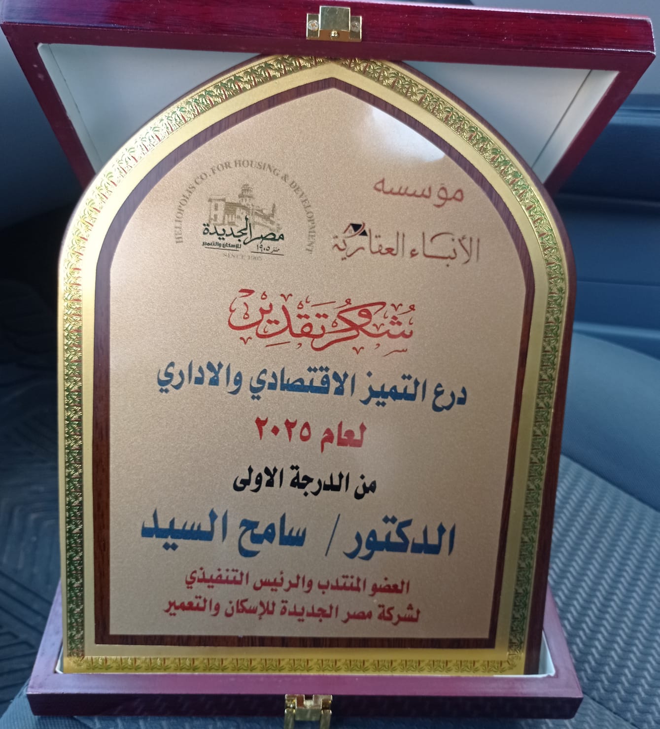 في حفل مميز، قامت مؤسسة الأنباء العقارية بتكريم الدكتور سامح السيد العضو المنتدب والرئيس التنفيذي لشركة مصر الجديدة للاسكان والتعمير.