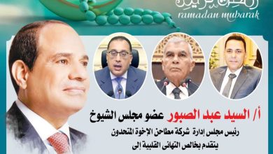 يتقدم أ/ السيد عبد الصبور، عضو مجلس الشيوخ، ورئيس مجلس إدارة شركة مطاحن الإخوة المتحدون، بخالص التهاني القلبية إلى: فخامة…